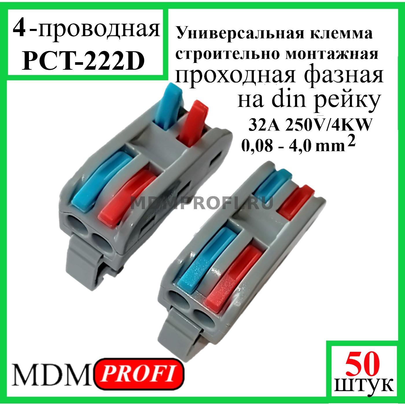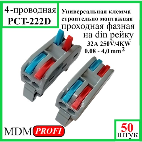 Многоразовые проходные фазные клеммы PCT-222D на Дин рейку "MDM PROFI" - аналог клемм WAGO имеют возможность установки на DIN ркйку и соединения 4 проводников разного сечения и типа проводов.( многожильные и одножильные).