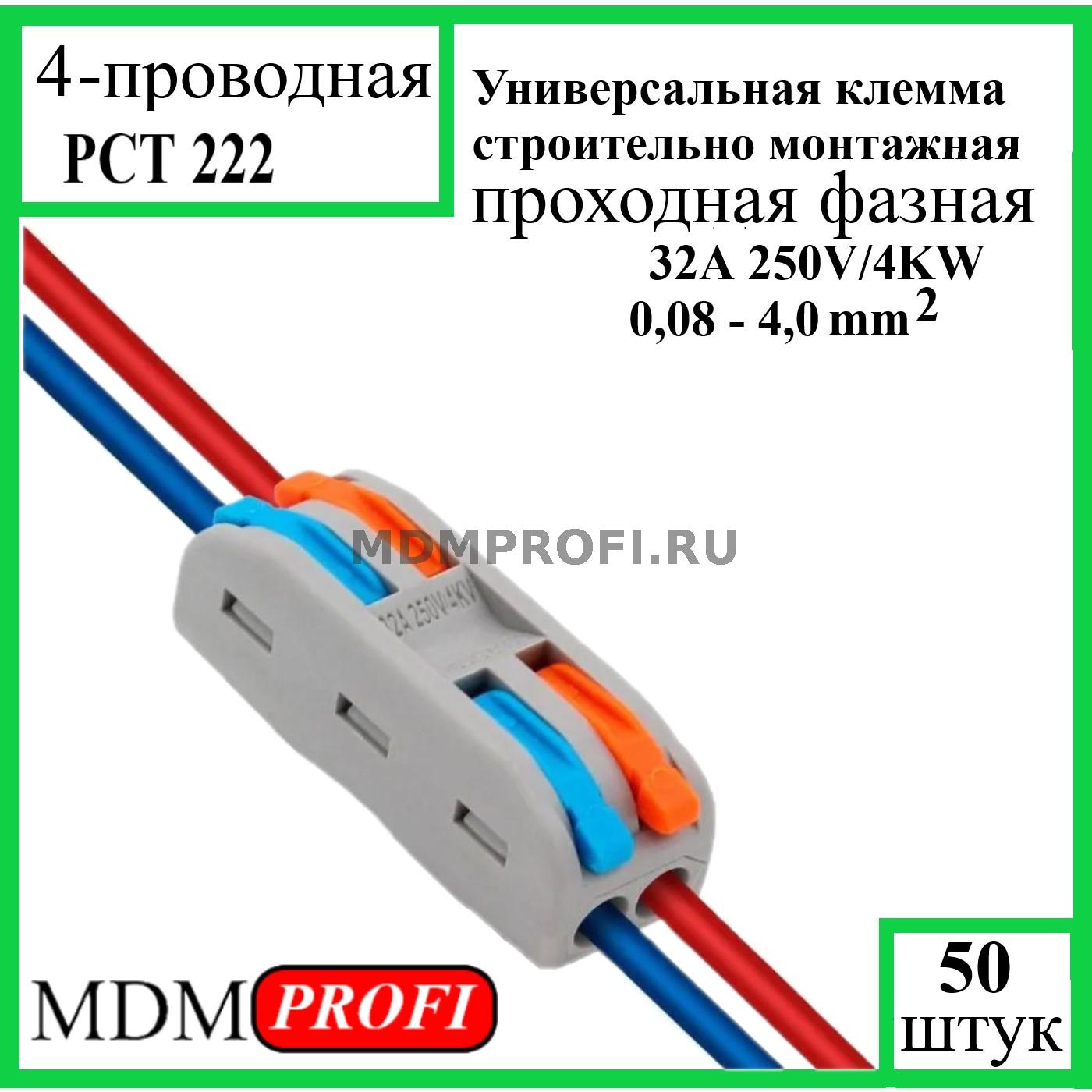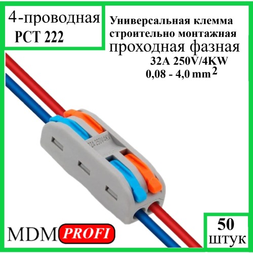 Многоразовые проходные фазные клеммы PCT-222 "MDM PROFI" - аналог клемм WAGO имеют возможность соединения 4-х проводников разного сечения и типа проводов.( многожильные и одножильные).