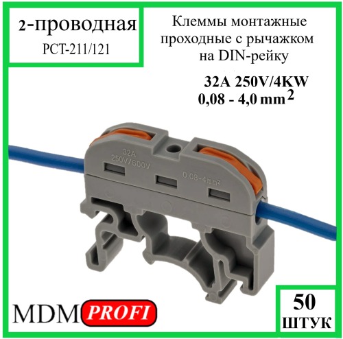 Многоразовые проходные фазные клеммы PCT-211D на Дин рейку "MDM PROFI" - аналог клемм WAGO имеют возможность установки на DIN ркйку и соединения 4 проводников разного сечения и типа проводов.( многожильные и одножильные).