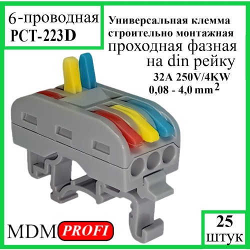 Многоразовые проходные фазные клеммы PCT-223 "MDM PROFI" - аналог клемм WAGO имеют возможность соединения 6-ти проводников разного сечения и типа проводов.( многожильные и одножильные).